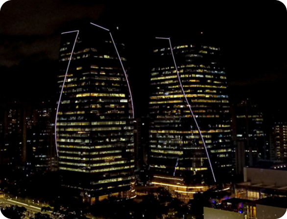 Atualmente, a iluminação da fachada do São Paulo Corporate Towers é o maior projeto de fachadas de grande porte instalado no Brasil. Quando a Lumideas instalou esse projeto, não havia referências da mesma magnitude, mas fomos ousados e fizemos um projeto com mais de 1 km de LED pixel line que movimenta duas torres de 139 metros cada.